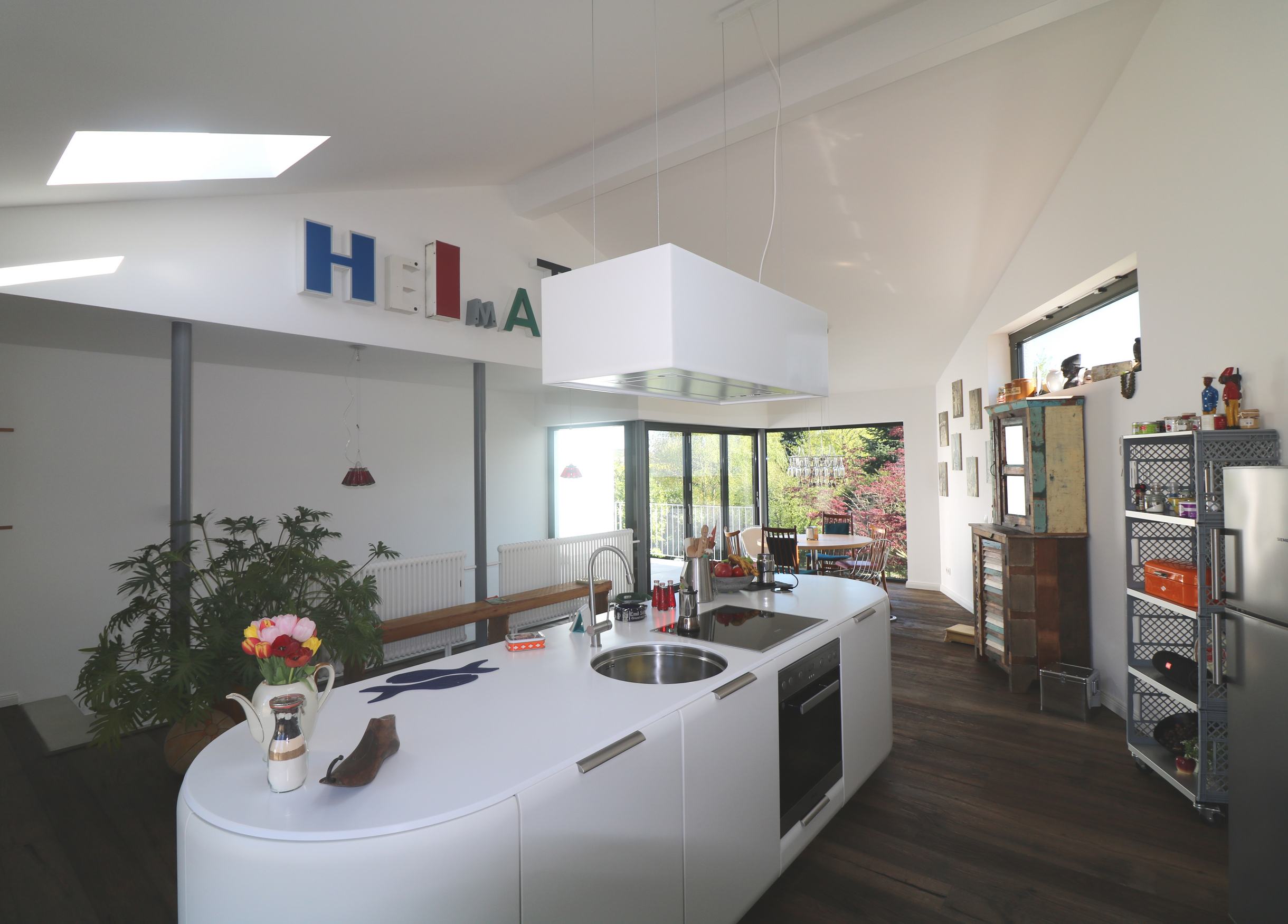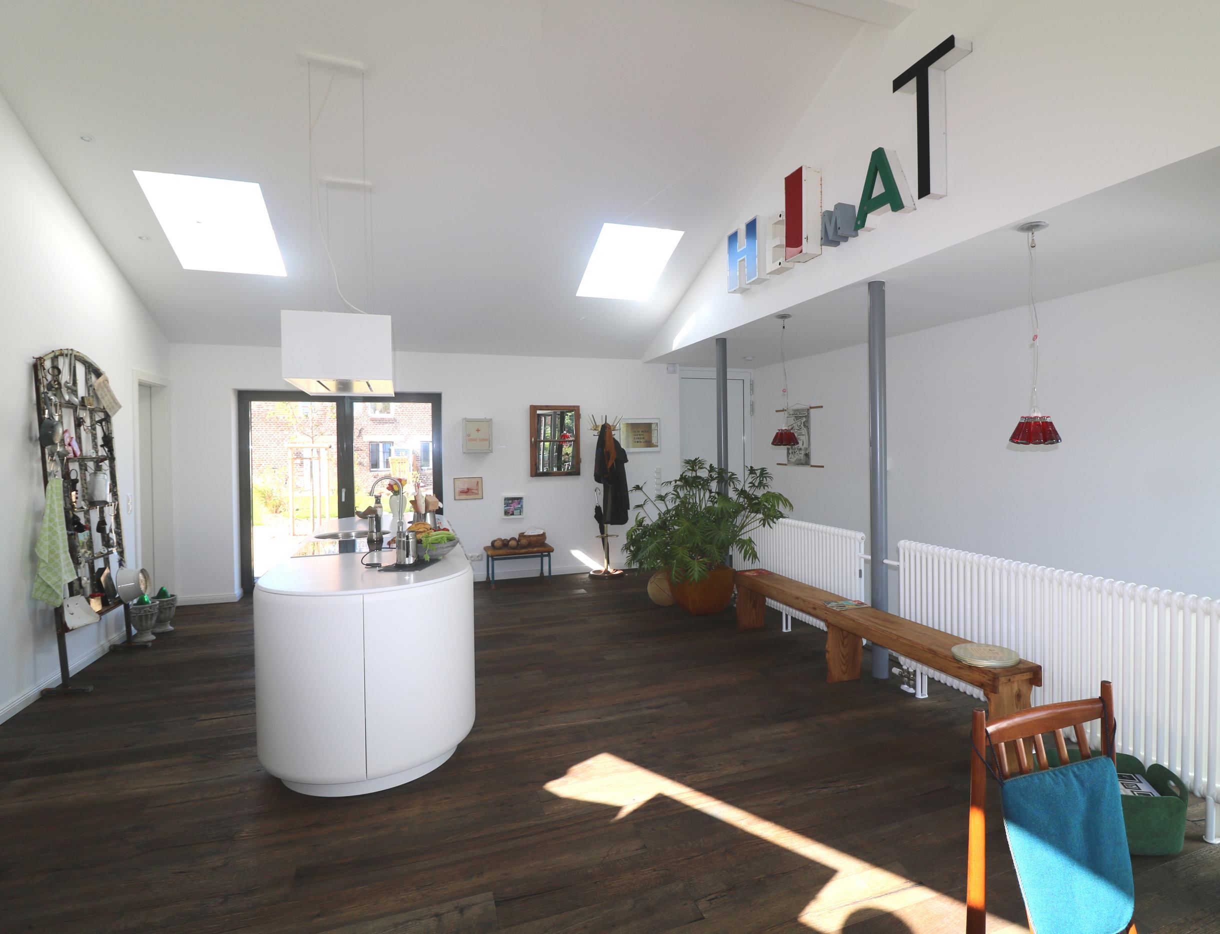 Die Grundrisse wurden offen und hell gestaltet, zahlreiche Materialzitate zeugen von der vergangenen Nutzung dieses Grundstücks als Bauernhof.