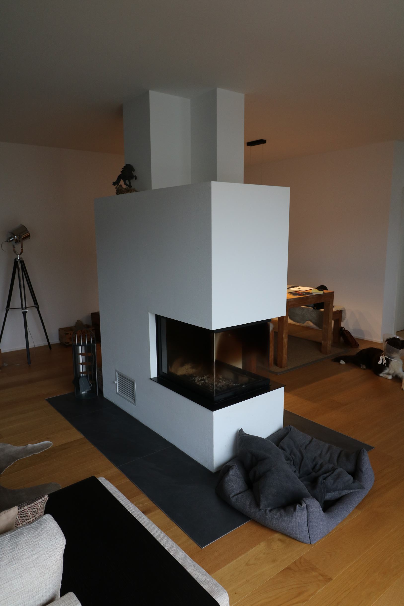 Dieser eingeschossige Bungalow aus den späten 70er Jahren befand sich weitgehend im Originalzustand. Das Gebäude wurde komplett saniert. Der Grundriss wurde zugunsten eines großen Badezimmers sowie eines offenen Koch- und Wohnbereiches verändert.